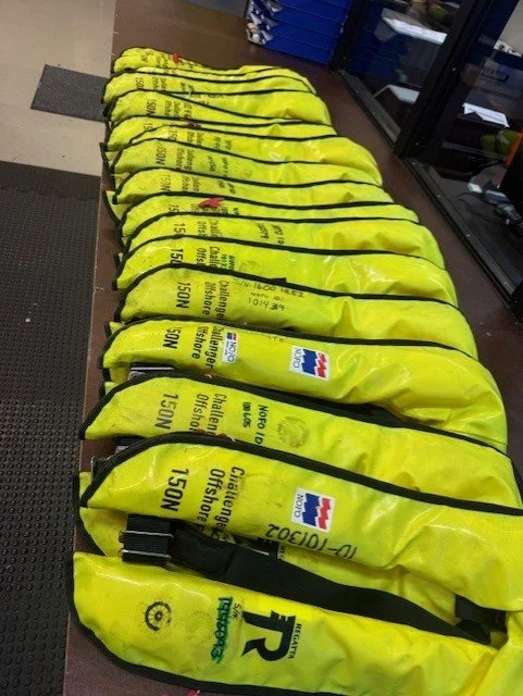 Hos Vulken Maritim tilbyr vi profesjonell kontroll, service og vedlikehold av oppblåsbare redningsvester for både maritime og offshore kunder.